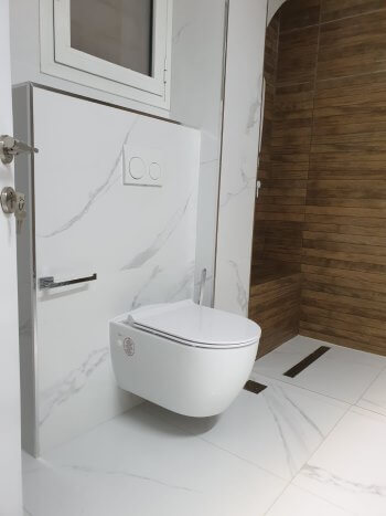 הדבקת קרמיקה על קיר צבוע בשירותים